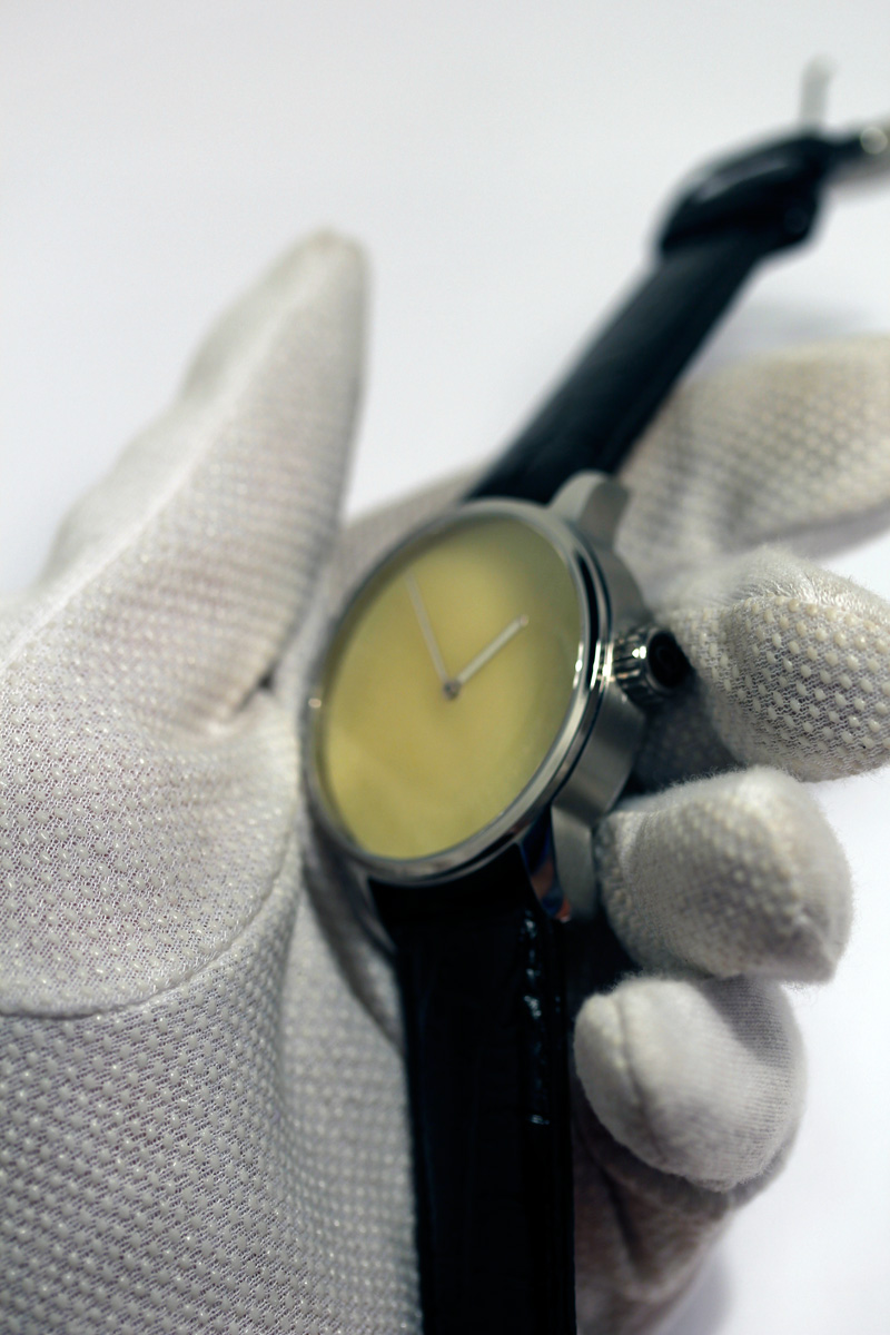 Three-body 1.435NcU Staybrite steel case with down turned lugs. polished and satin finished, 42.00 mm. Sapphire crystal. The dial solid luminous compond with guilloche hand engraving